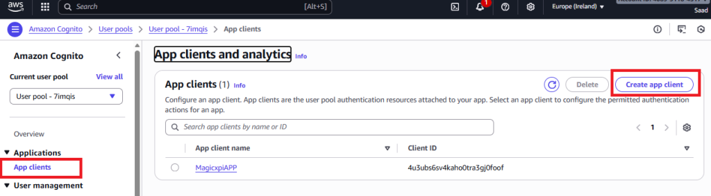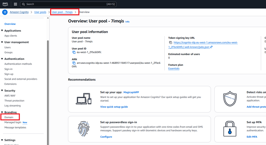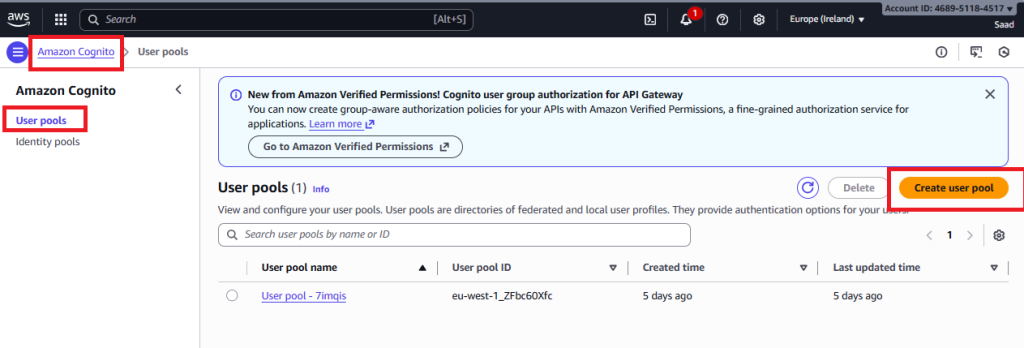 1/ Sign on your AWS portal and create a user pool in Cognito