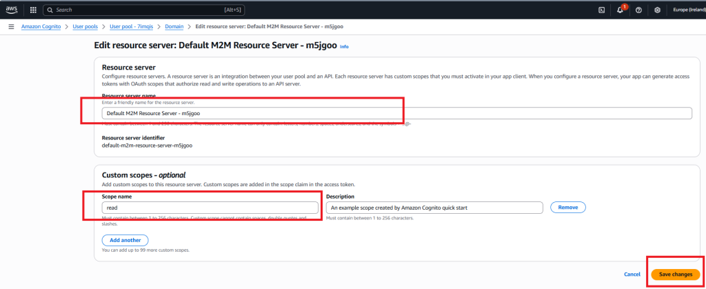 Add a security role (« default-m2m-resource-server-m5jgoo/read ») (step 3) for the endpoint you want to protect