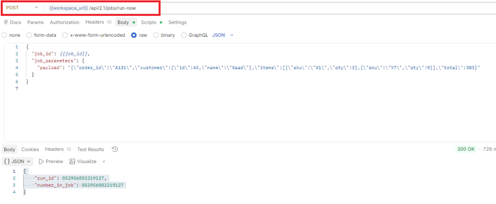 (*) https://docs.databricks.com/api/workspace/jobs/runnow