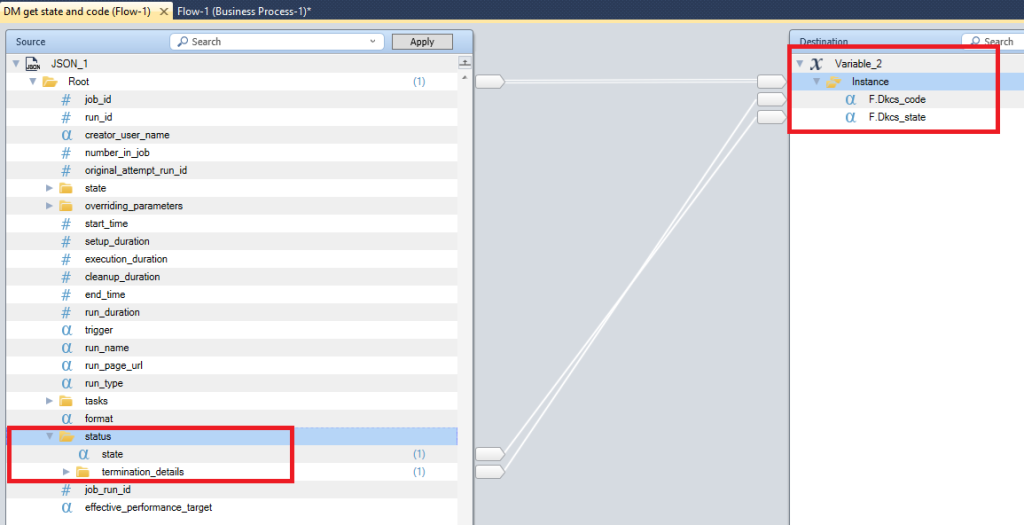 12/ Use a Datamapper with a json schema to retrieve the State and Code job