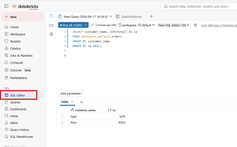 13/ Use the SQL Editor in databroicks