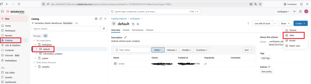 2/ Create a table in your catalog