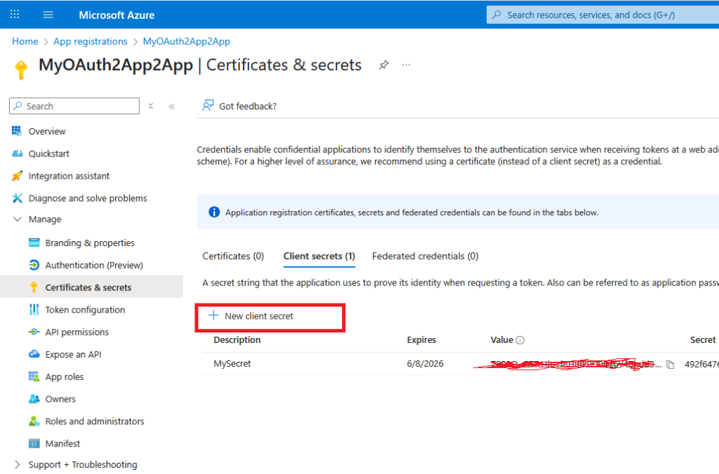 Click on certificates and secrets and create a new secret and keep your secret in a safe place.