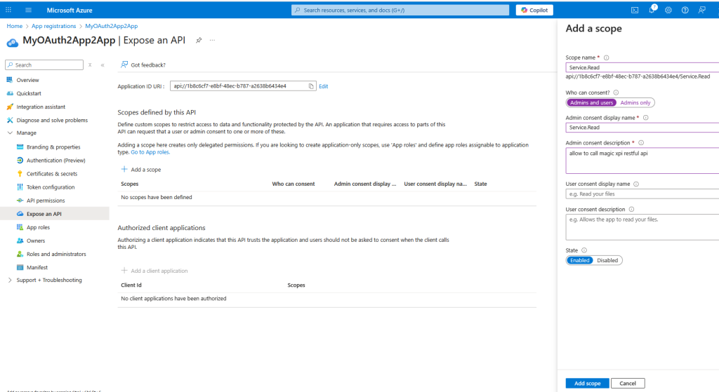 Goal : Configure OAuth2 Authentication for Magic xpi RESTful API Service using Microsoft identity platform Application2Application