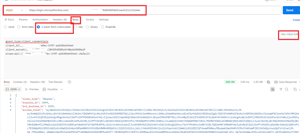 make a POST on your token URL and pass in the body (clientid, client secret, grant type and scope) in urlencoded format