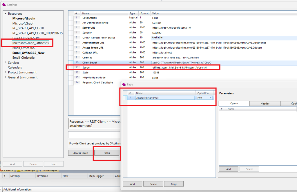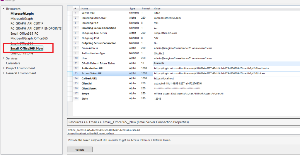 Retrieve the ClientId, ClientSecret, TenantId in other to define this settings in the Magic xpi Resource Repository